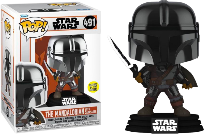 Star Wars: The Mandalorian - Mandalorian with DarkSaber Glow Metallic Pop! Vinyl #491