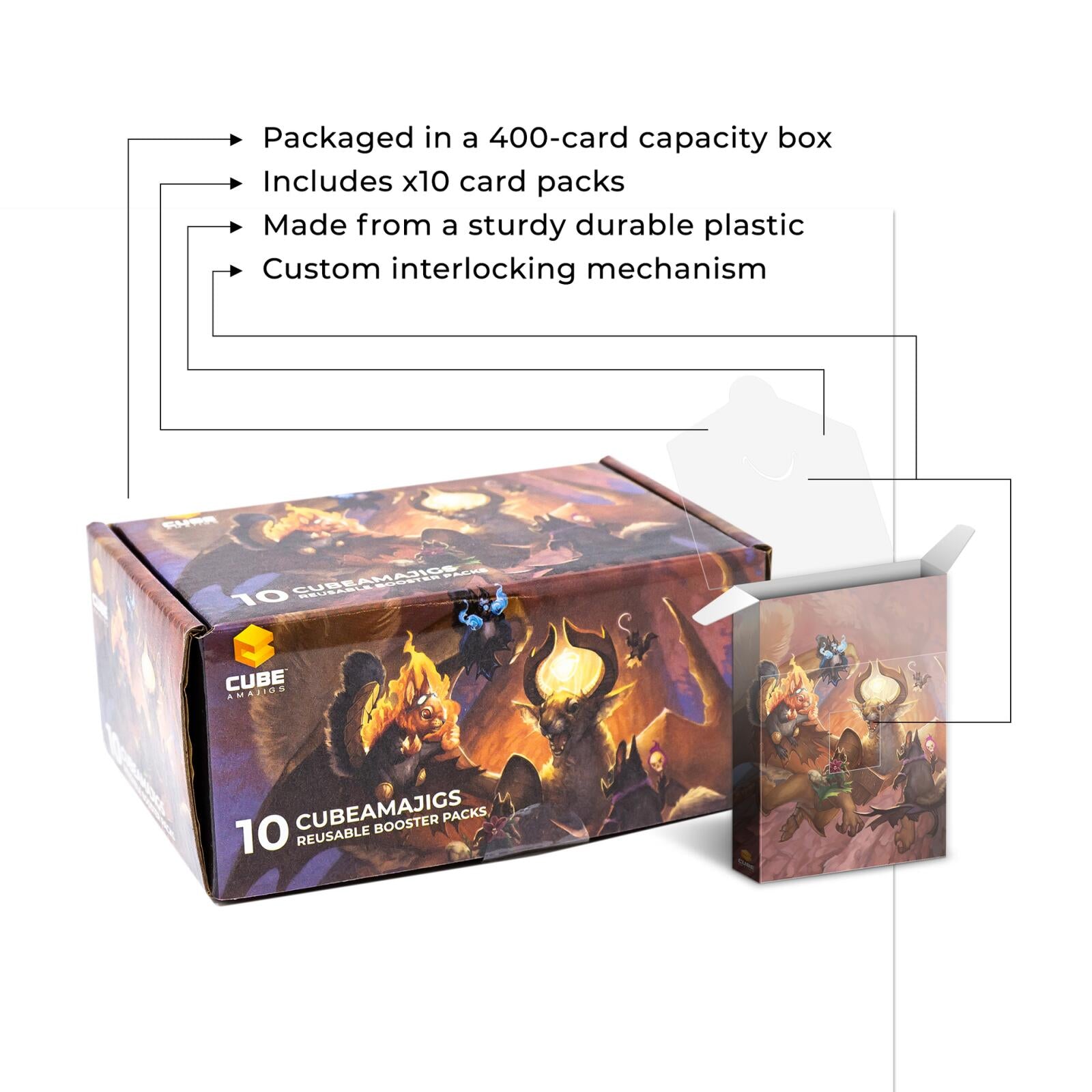 Cubeamajigs are reusable gaming packs that allow you to recreate the experience of opening a sealed pack of cards! They also serve as a great way to store a sideboard or cards together.
