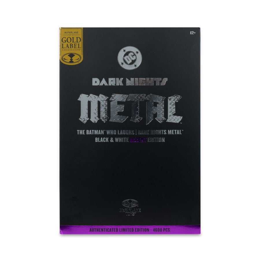Born from the nightmares of the Dark Multiverse, the Batman Who Laughs is a hybrid version of the Batman and The Joker from Earth-22. This twisted version of Batman was created when nanotoxins from The Joker's heart were released into Bruce Wayne's bloodstream, causing the Dark Knight's perfect mind to merge with the warped psyche of the Clown Prince of Crime. He soon became part of an attempt to plunge the entire Multiverse into ultraviolence, chaos, and utter darkness. After being initially defeated, the Batman Who Laughs managed to survive and remains a threat to the greatest heroes of the Multiverse. Features: - The Batman Who Laughs is featured in black and white deco with pops of purple accents - Incredibly detailed 7" scale figure based off the DC Multiverse - Designed with Ultra Articulation with up to 22 moving parts for full range of posing and play - Accessories include a Knife and a Sickle plus a figure base, authenticated art card and an art card display base - Collect all McFarlane Toys DC Multiverse figures