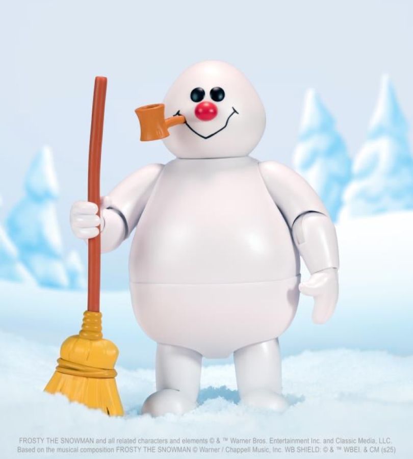 Step into the magic of the holidays with the Frosty the Snowman 1:12 scale action figure, faithfully capturing the charm of the beloved classic. Every detail shines, from his jolly grin to the soft goods scarf draped around his neck. Whether spreading cheer or standing still in the winter snow, this figure brings the spirit of the season to your collection. Frosty comes loaded with festive accessories to recreate your favorite moments. Swap between his joyful, animated head sculpt and an alternate inanimate version to tell the full story of his magical transformation. Join him with his loyal companion, Hocus Pocus the rabbit, and equip Frosty with his trusty broom and signature corn cob pipe. Two hats are included, one wearable to bring Frosty to life, and a separate accessory hat for display or scene building. The holiday magic doesnt stop there. Frosty arrives in nostalgic retro television-style packaging, evoking the cozy feeling of watching the original special with friends and family. Whether youre a longtime fan or discovering the wonder for the first time, this figure is a heartwarming addition to your winter display; a perfect blend of collectible craftsmanship and holiday nostalgia.