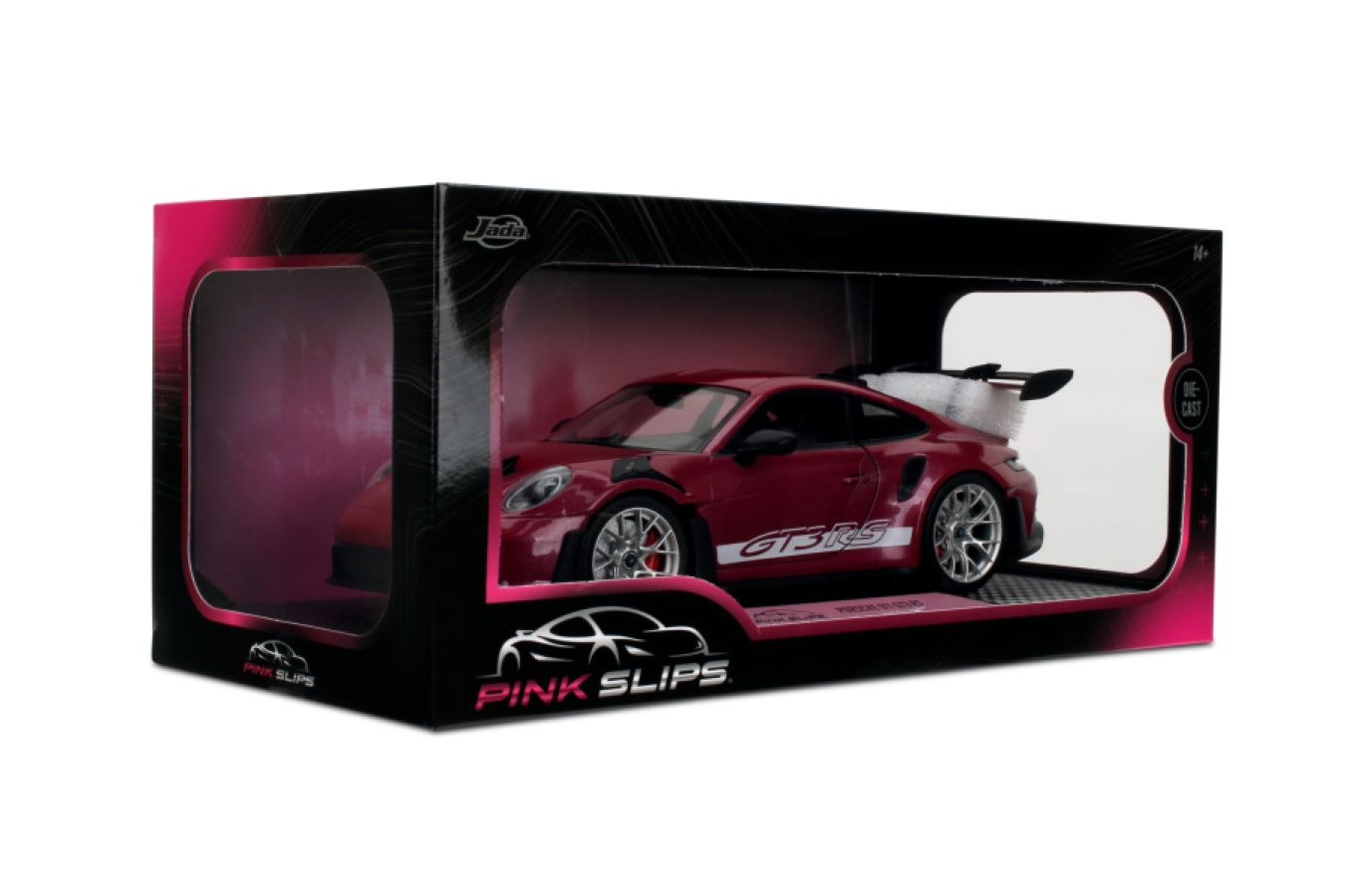 Jada Toys presents the all new Pink Slips - Porsche GT3 . 1:18 Scale Diecast Vehicle. - Crafted from durable die-cast material - Perfect gift for kids and adult - Die cast body with moving parts - Durable enough to be played indoors or outdoor - Elegant and lovely eye-catching design - 1:18 Scale Add it to your collection today.