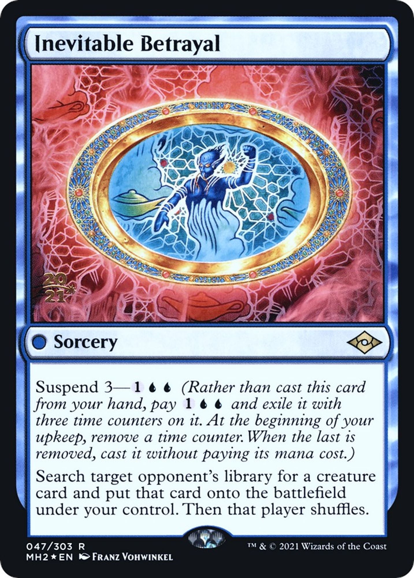 Description: Suspend 3—1UU (Rather than cast this card from your hand, pay 1UU and exile it with three time counters on it. At the beginning of your upkeep, remove a time counter. When the last is removed, cast it without paying its mana cost.)