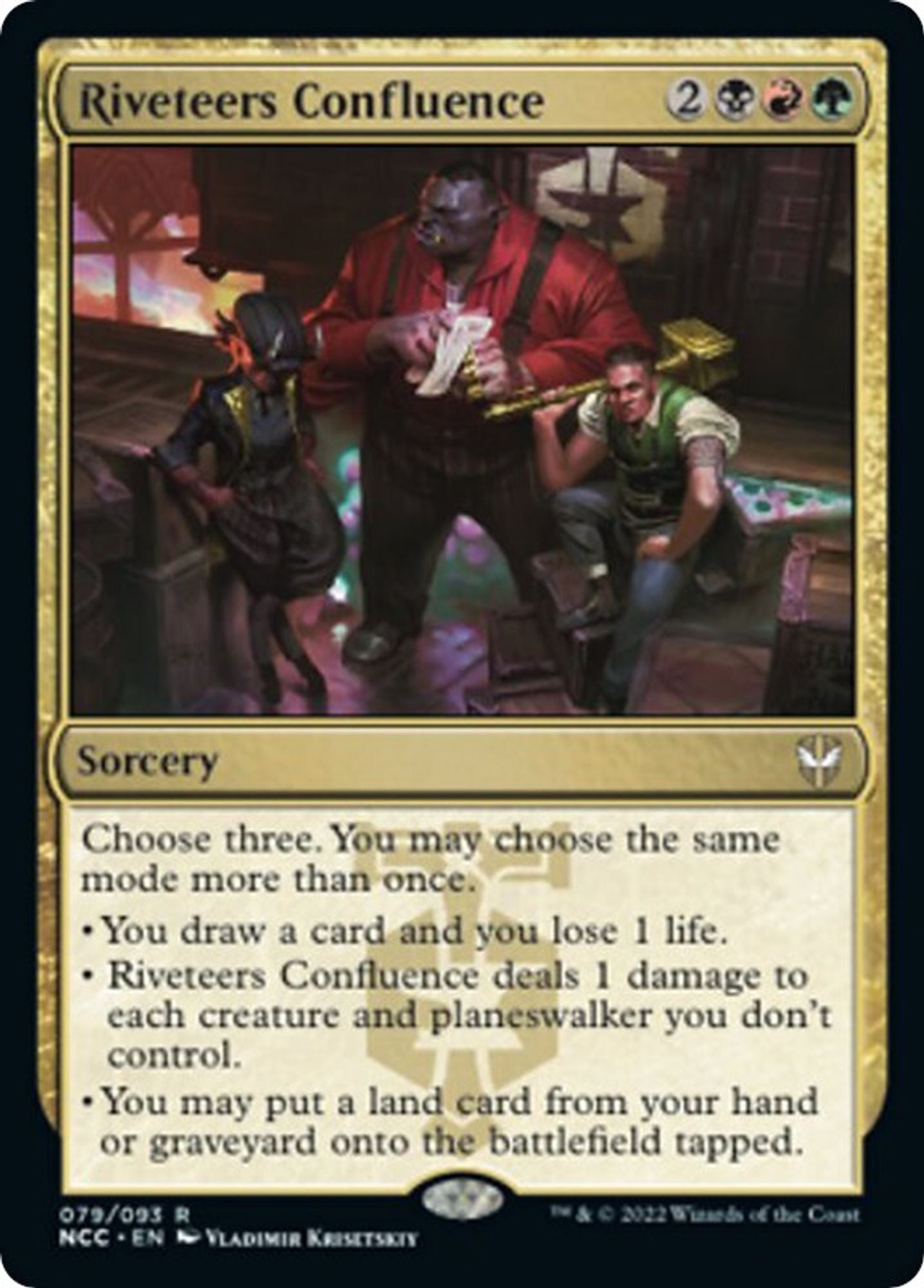 - TCGplayer Tip: Being able to choose each mode on Riveteers Confluence multiple times means it can be a draw three, deal three to each opponent and their creatures, or return three lands to the battlefield. However, the flexibility to mix and match makes the Confluence powerful.