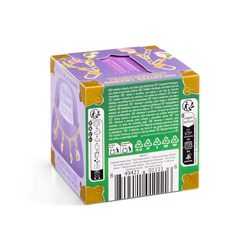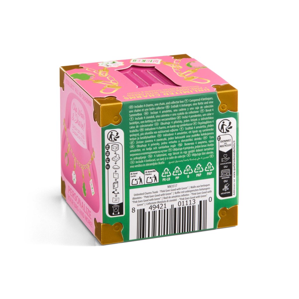 Each of the 4 colorful trunks includes 4 unique charms—for a total of 16 charms to collect—plus a 9-inch gold chain for easy personalization! Stylish, versatile, and full of personality, these charms come in four dazzling themes: Best Friends Forever, Pink Goes Good With Green, Welcome to Shiz, and Emerald City.