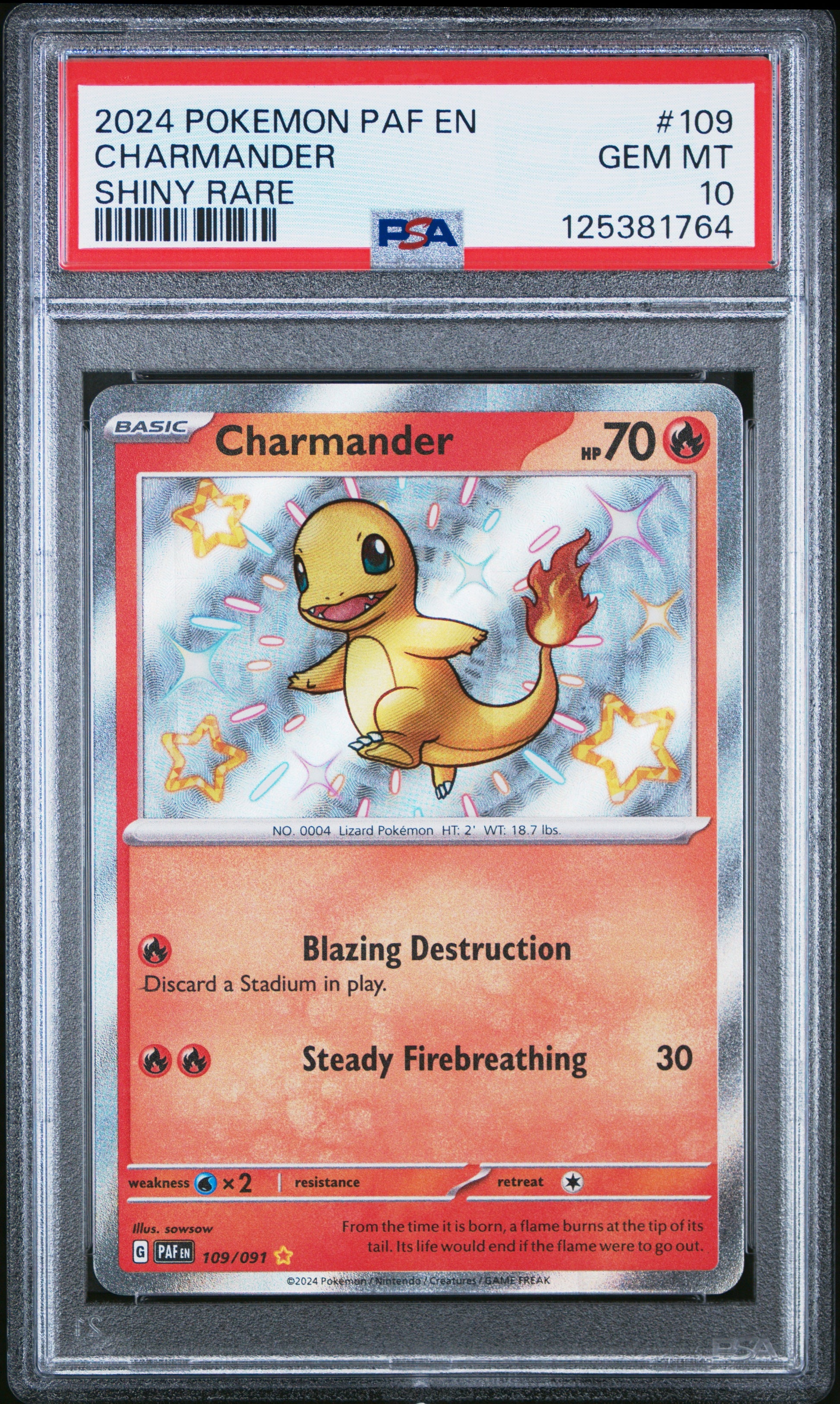 2024 Pokemon Paf En-Paldean Fates 109 Charmander Shiny Rare - PSA 10