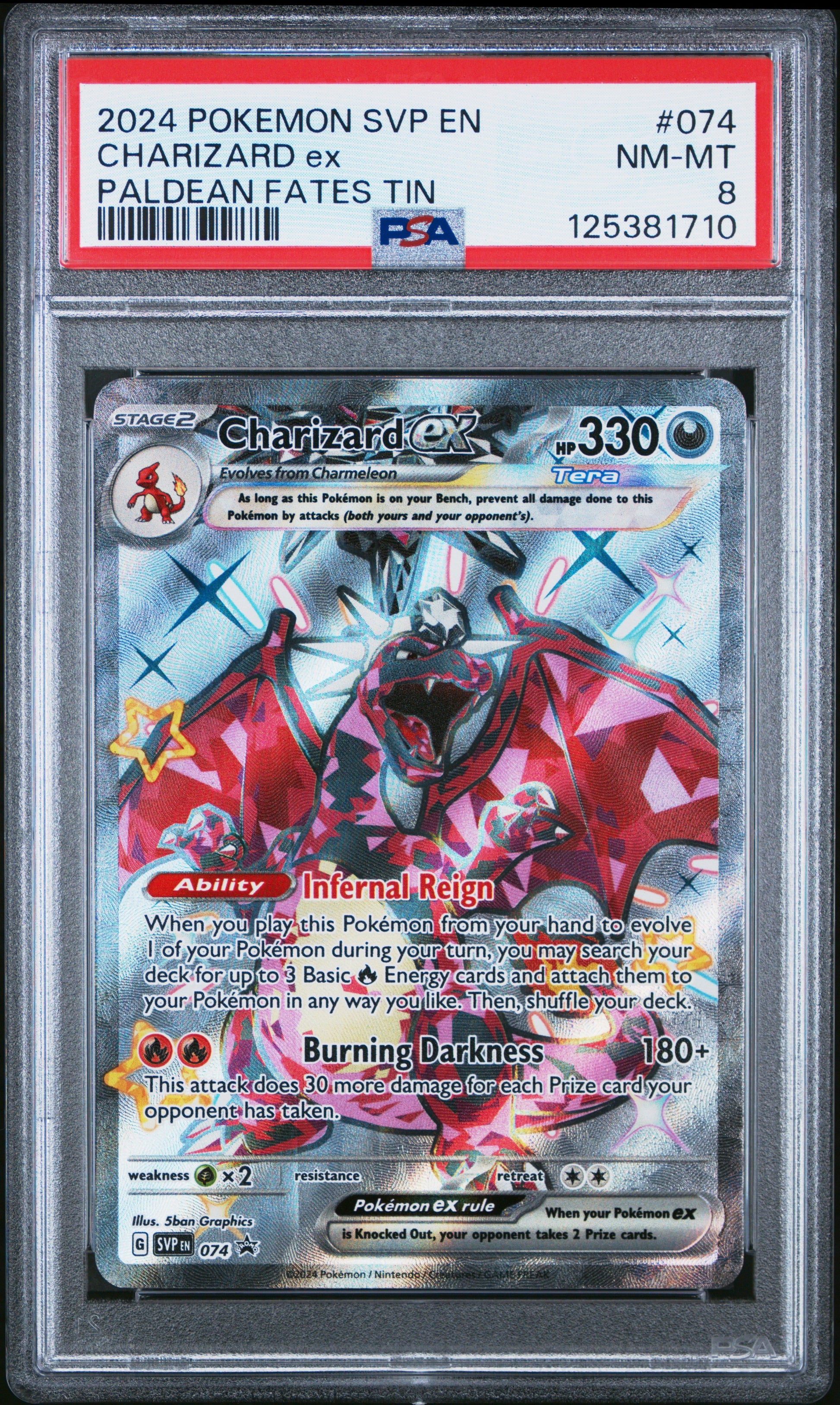 2024 Pokemon Svp En-Sv Black Star Promo 074 Charizard Ex Paldean Fates Tin - PSA 8