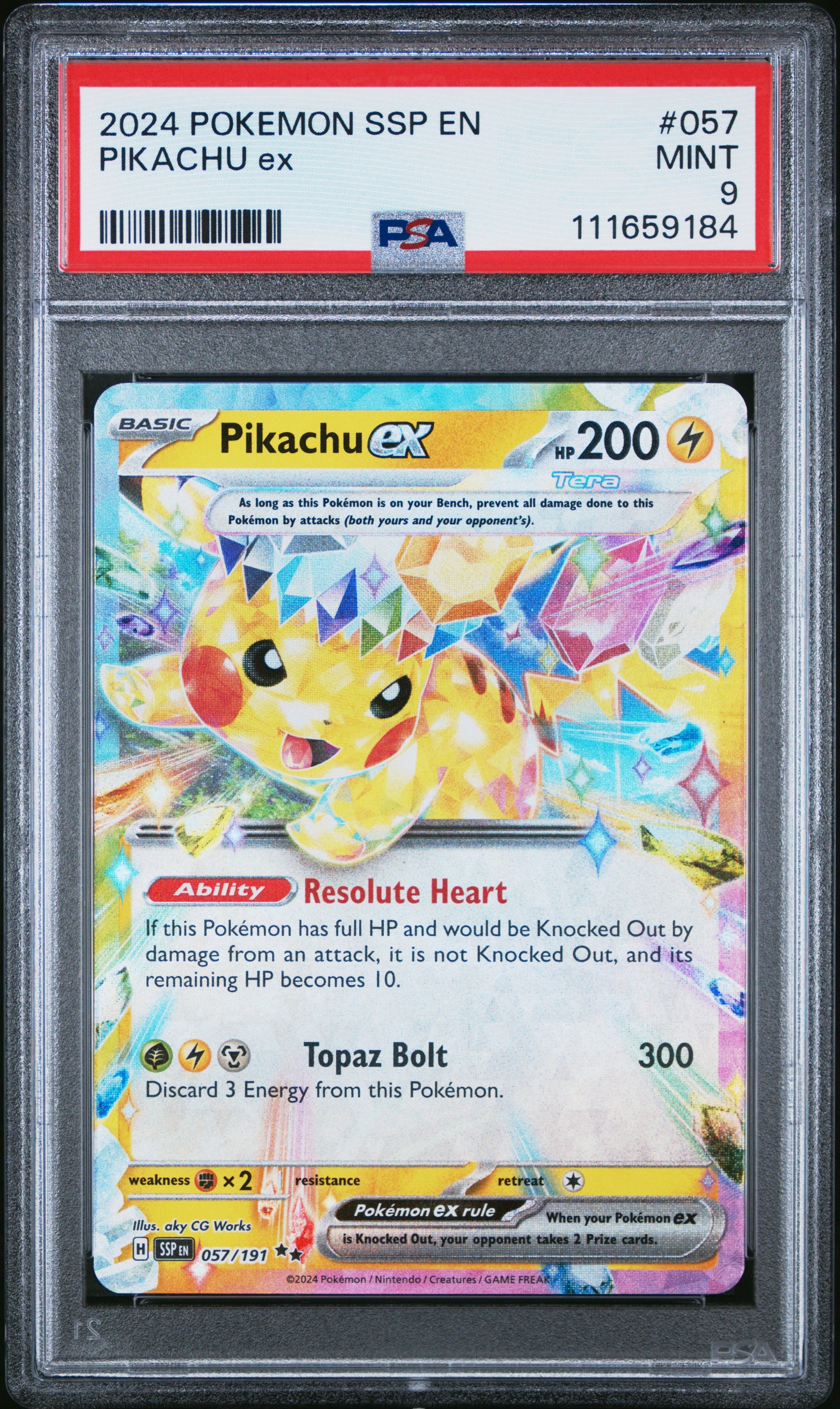 2024 Pokemon Ssp En-Surging Sparks 057 Pikachu Ex - PSA 9