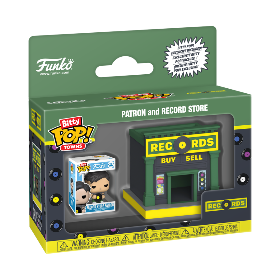 The world of POP! is getting bigger-and smaller-with Bitty POP! collectibles! Expand your Bitty City collection with Bitty POP! Town Record Store Patron and Record Store! Bitty POP! figure is packaged in a hard acrylic display case with a detachable bottom lid. The detachable bottom lid doubles as an acrylic base, to which the Bitty POP! figure is adhered. Remove Bitty POP! Record Store Patron from his display case so he can step inside the Bitty POP! Town Record Store! Vinyl figures are approximately 0.9 and 2 in (2.3 and 5.1 cm) tall. Warning: Choking Hazard. Collectibles are small. Not for children under the age of 3 years old.
