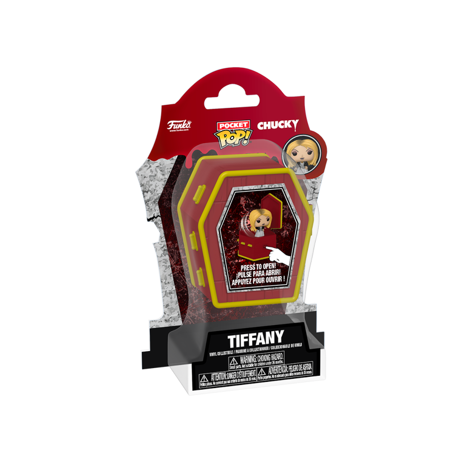Pop open a frightfully fun surprise with Pocket POP! Tiffany! Concealed within a charming, coffin-shaped popper, Pocket POP! Tiffany is ready to appear at the push of a button! Expand your collection by making this popper the next addition to your Chucky lineup. Vinyl popper is approximately 2.1 in W x 2.4 in H x 1.4 in D (5.3 cm W x 6.1 cm H x 3.6 cm D) tall. Vinyl figure is approximately 1.5 in (3.8 cm) tall. Warning: Choking Hazard. Collectibles are small. Not for children under the age of 3 years old.