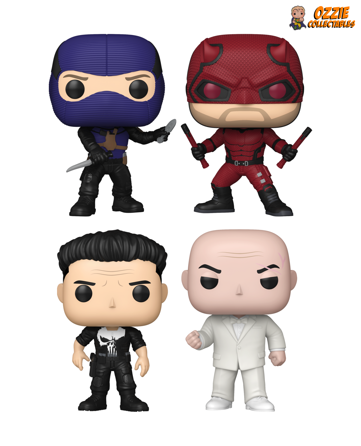 Step into the gritty streets of Hell’s Kitchen with the Daredevil: Born Again Bundle - 4 POP! Vinyls, a thrilling discounted set available at Ozzie Collectables! This action-packed bundle features Daredevil, Bullseye, Punisher, and Kingpin – four iconic characters from the highly anticipated Daredevil: Born Again series. Each stylised figure is packaged with a free Pop Protector, making it the perfect addition for Marvel fans and collectors looking to capture the dark, dramatic essence of the show.