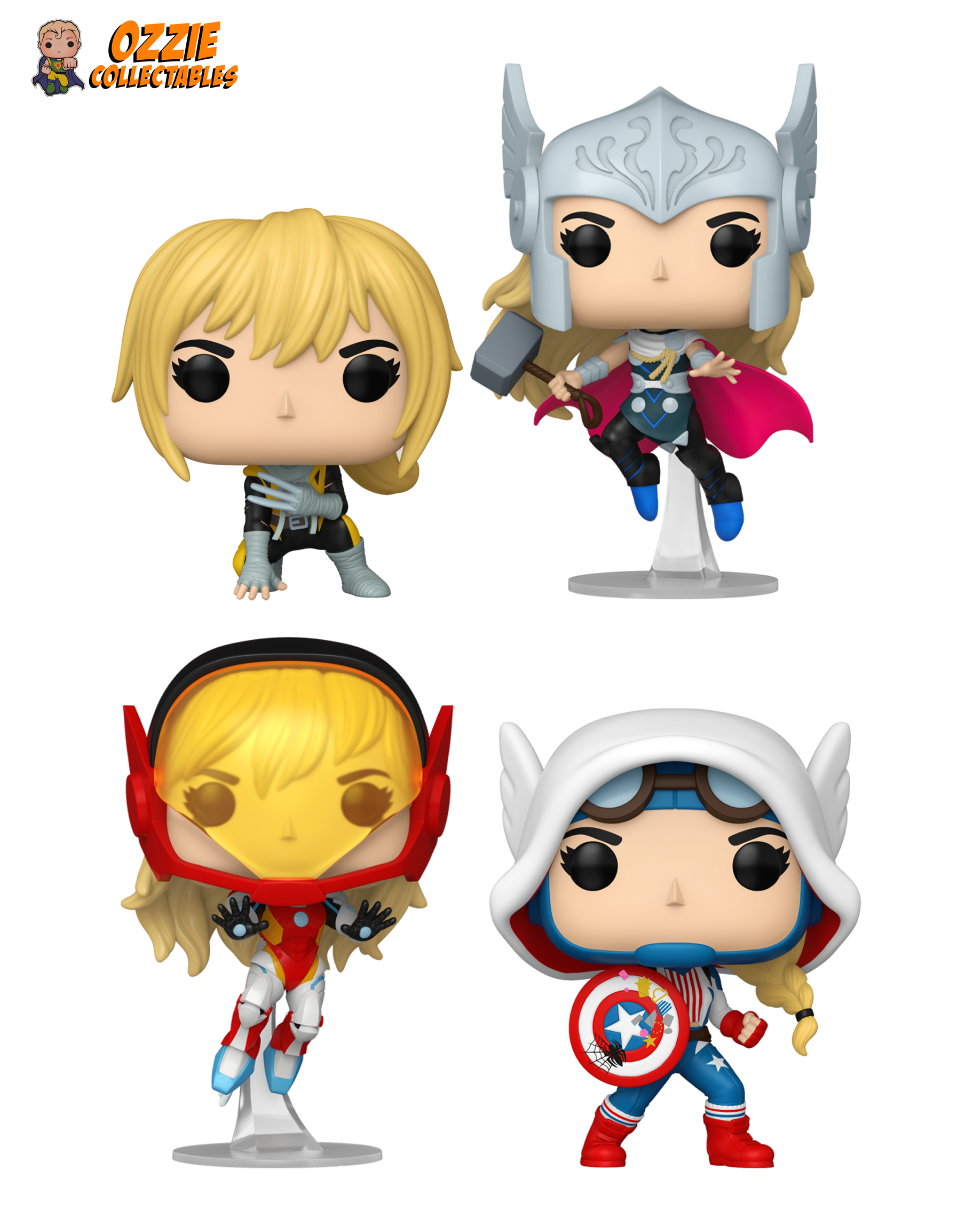 Unleash the power of the Gwen-Verse with this Marvel Comics: Gwen-Verse Bundle - 4 POP! Vinyls, featuring Wolver-Gwen, Thorgwen, Iron Gwen, and Cap-Gwen! This discounted Funko bundle at Ozzie Collectables is a must-have for Marvel fans and collectors, bringing together four iconic Gwen Stacy variants in one epic set. Each Pop! Vinyl captures a unique mash-up of Gwen with legendary heroes, from Wolverine’s fierce claws to Thor’s mighty hammer. Plus, enjoy added protection with free Pop Protectors included for each figure. Don’t miss your chance to expand your collection with this ultimate Gwen-Verse lineup!