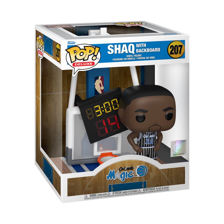 Recruit POP! Shaq of the NBA's Orlando Magic to your basketball collection! In his black pinstripe uniform, POP! Deluxe Shaq with Backboard is sure to be a slam dunk on your personal roster. Vinyl figure is approximately 6.6 in (16.8 cm) tall.