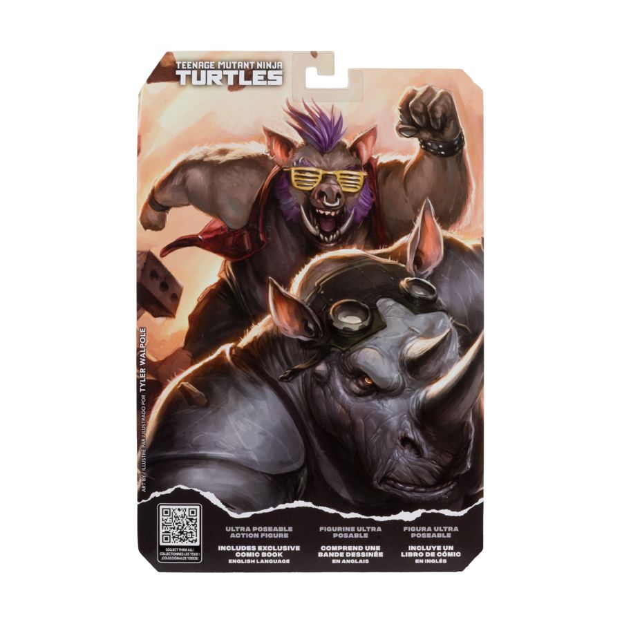 The routine life of a street-level goon can get dull, so when opportunity presents itself these two won't let it pass them by, but as they are about to learn the hard way, there's more to being a successful mutant menace than just strength. Don't miss this bone shattering issue that sets the stage for the final showdown in City Fall! Features: - 5" scale ultra poseable action figure is based on IDW Publishing Teenage Mutant Ninja Turtles artwork - Includes 3 alternate hands alternate head, chainsaw and weapon - Also includes an exclusive "Page Puncher Edition" comic book re-print from IDW Publishing - Teenage Mutant Ninja Turles Page Punchers themed blister card packaging - Collect all McFarlane Toys x Teenage Mutant Ninja Turtles Page Punchers figures