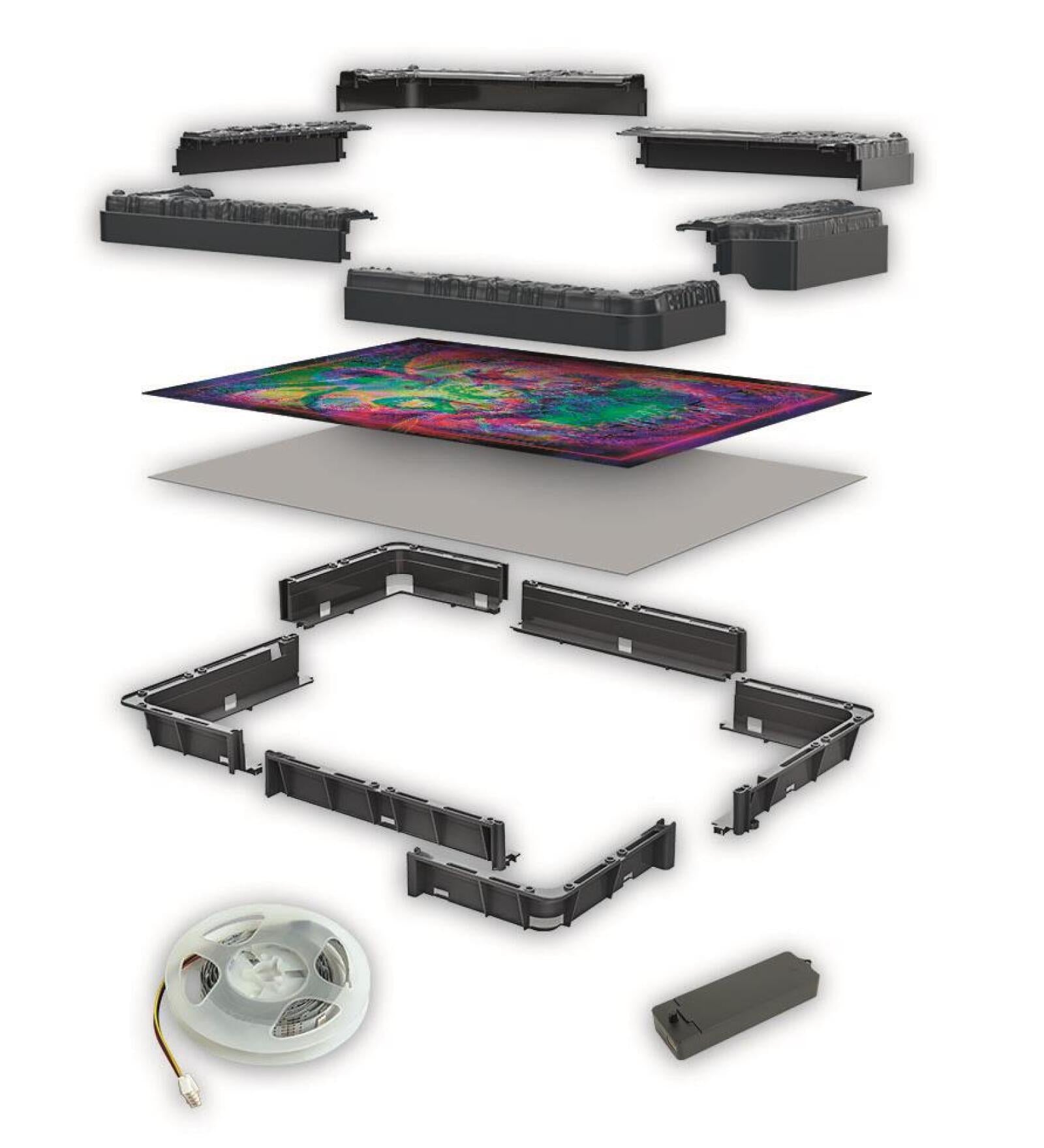 - Features LED light strip with 4 light modes, each light colour reveals a different image