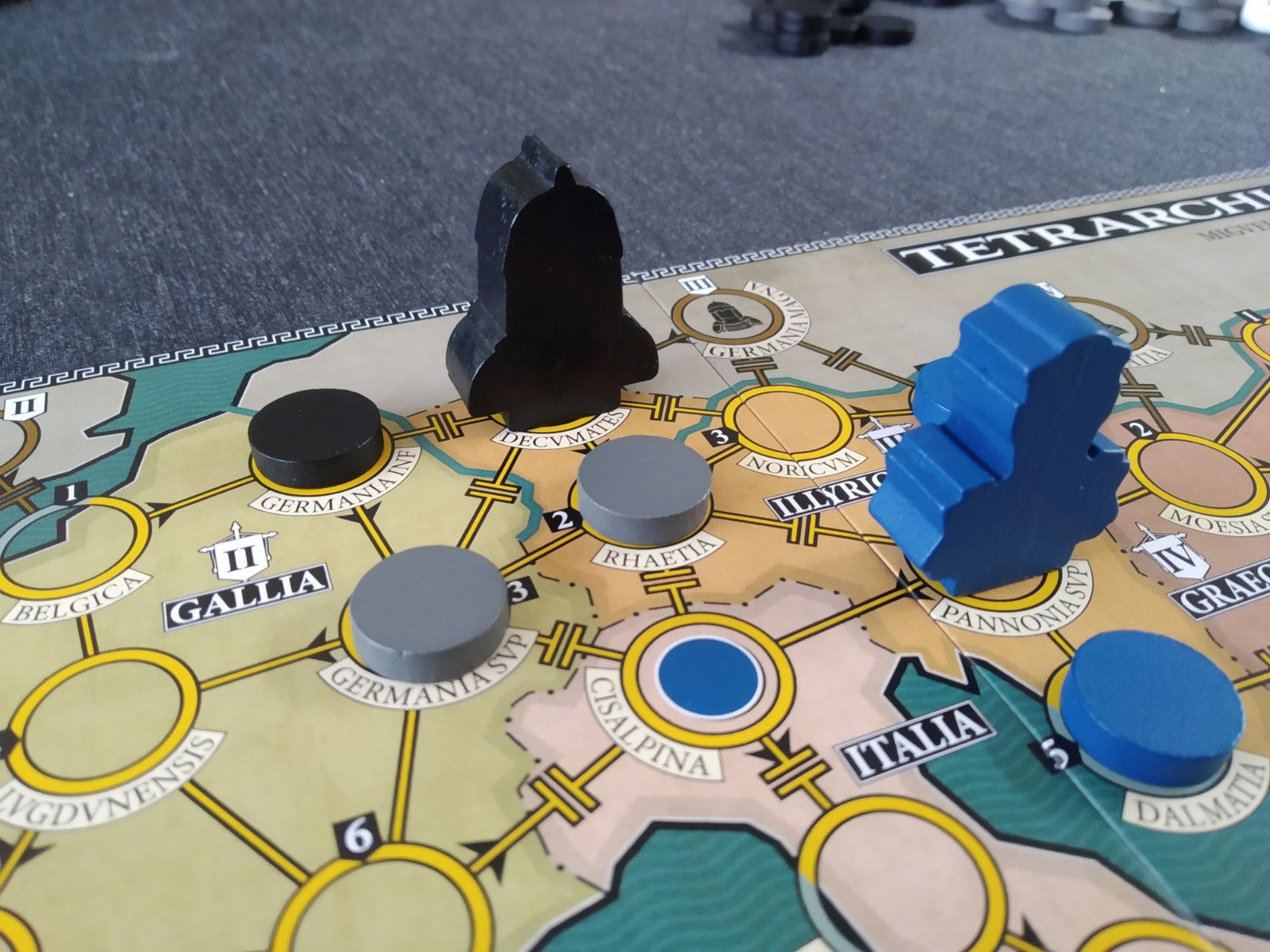 TETRARCHIA ("rule of four" in Latin) is a cooperative game in which 1 to 4 players take the role of the 4 Emperors, fighting the revolts within the Empire and the Barbarian armies that try to bring it down. With easy rules, the core engine leads to very different games full of interesting choices, with up to 81 difficulty levels. The Draco Ideas edition also includes: