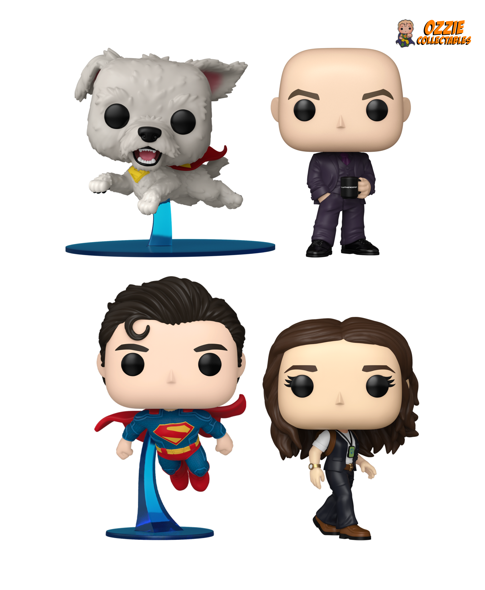 Celebrate the return of the Man of Steel with the Superman: Legacy (2025) Bundle - 4 POP! Vinyls, an exclusive discounted set from Ozzie Collectables! This heroic collection features Superman, Lois Lane, Lex Luthor, and the adorable Krypto, all inspired by the upcoming 2025 film. Perfect for DC fans and collectors alike, each figure comes with a free Pop Protector for premium display and protection. Don’t miss your chance to own a piece of cinematic history with this action-packed bundle!