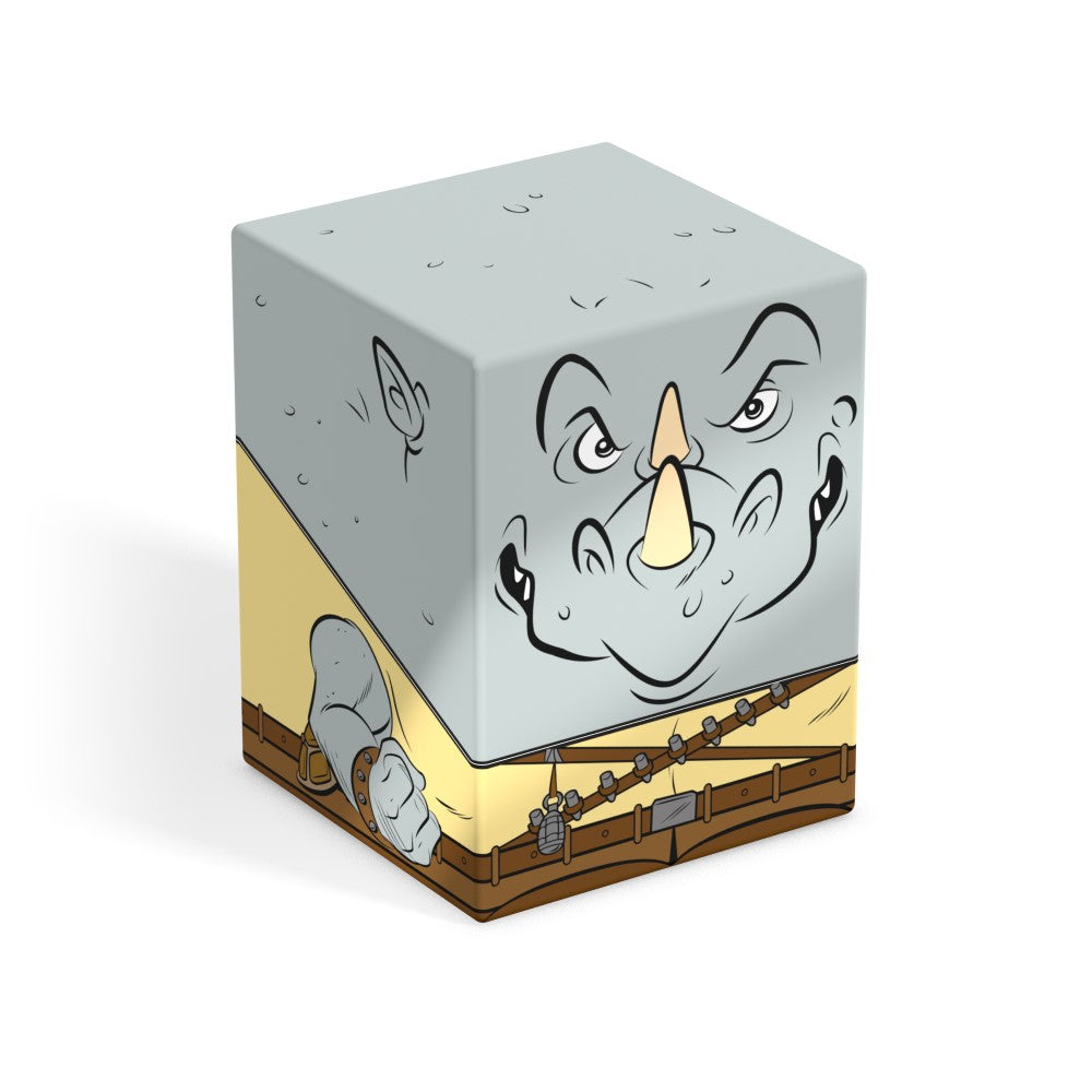 Collectible box for storing TCG decks, tabletop gaming accessories, and/or collectibles. The Rocksteady Squaroe from the Teenage Mutant Ninja Turtles edition holds up to 100 cards in double protective sleeves if used as a deck box. Squaroes are made from 78% renewable resources and fit perfectly into the separately available Collectors Case (247664).