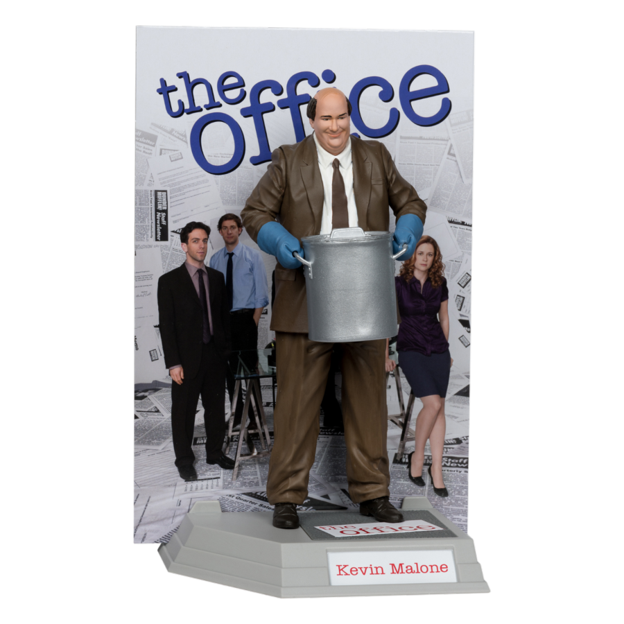 Led by the comically incompetent Michael Scott, employees plod along at Dunder Mifflin's Scranton-based paper supply branch, where foibles, feuds and office romances unfold through the lens of an ever-present documentary crew. Features - Incredibly detailed, highly decorated 6" scale posed figure based on the hit TV series The Office - Kevin Malone's accessories include a printed backdrop and an environmental base, collectible art card and display base - Also includes secret bonus item - Collect all McFarlane Toys Movie Maniacs Figures