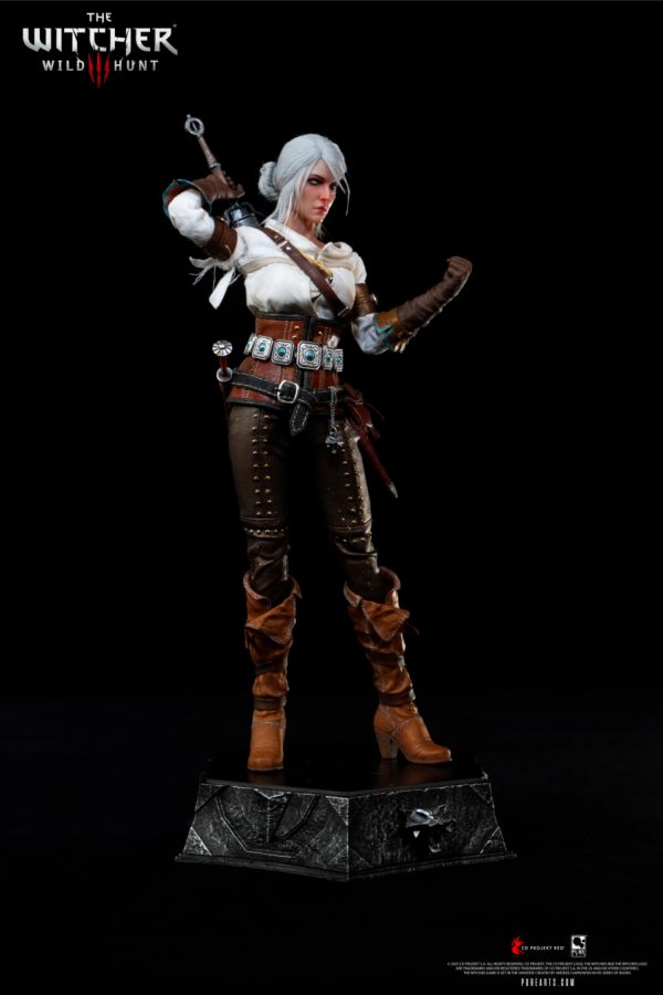 "I refuse to sit idle while you risk your lives for me." - Ciri of Cintra Hand-crafted and highly detailed with wool-rooted hair, meticulously detailed armor, and expertly tailored real clothing to create an incredibly realistic rendition of The Witcher 3: Wild Hunt's Ciri of Cintra. The poses are endless thanks to the full articulation, metal Zireael sword & sheath, dagger, and 4 sets of hands that complete this 1/6 scale articulated figure. Ciri's eyes are movable thanks to an innovative tool inside her head that enables lifelike expressions. It's the perfect companion to The Witcher 3: Wild Hunt Geralt of Rivia 1/6 Scale Statue! With real clothing, faux fur, and metal weapons, the next generation of articulated figures is here! Features: - Highly detailed articulated figure of The Witcher 3: Wild Hunt's Ciri of Cintra - Sculpted base - Fully articulated - Real, hand-tailored clothing - Wool rooted hair - Movable eyes & adjustment tool - 4 sets of hands - 1 medallion - 1 metal Zireael sword & sheath - 1 dagger - 1 faux fur mantle - Premium art box