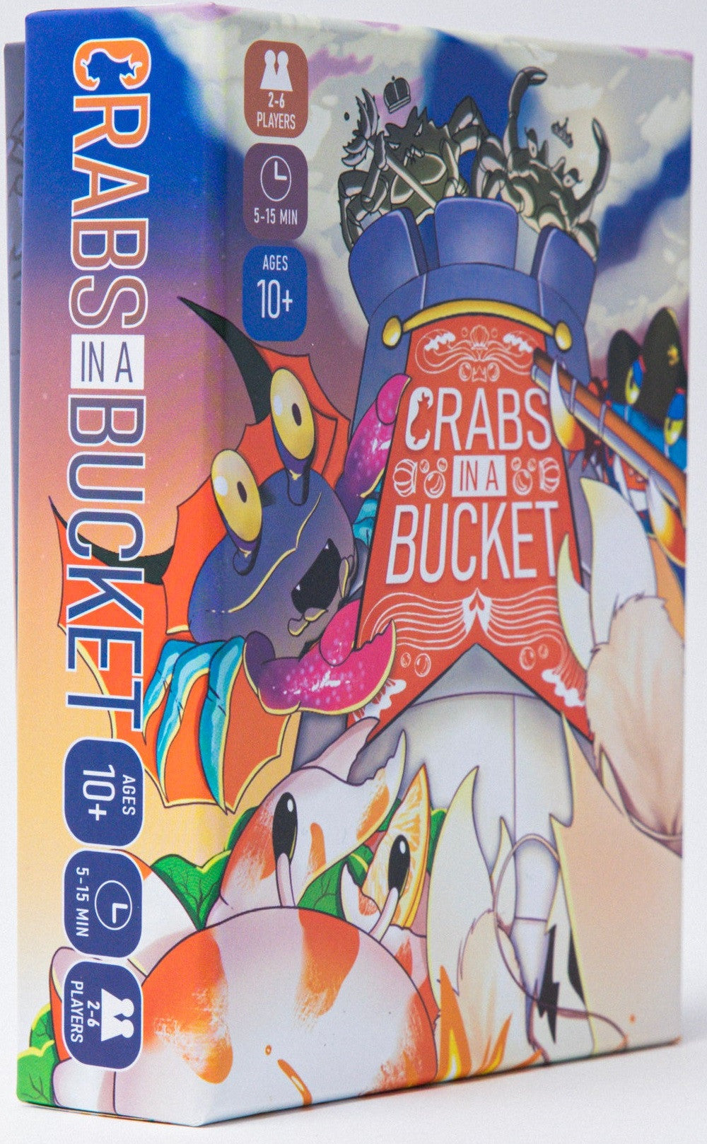 Crabs in a Bucket is a fast-paced shedding type card game for 2-6 players that blends luck, strategy, and a cast of colorful crab characters. The goal of the game is to be the first player to play or discard their entire hand.