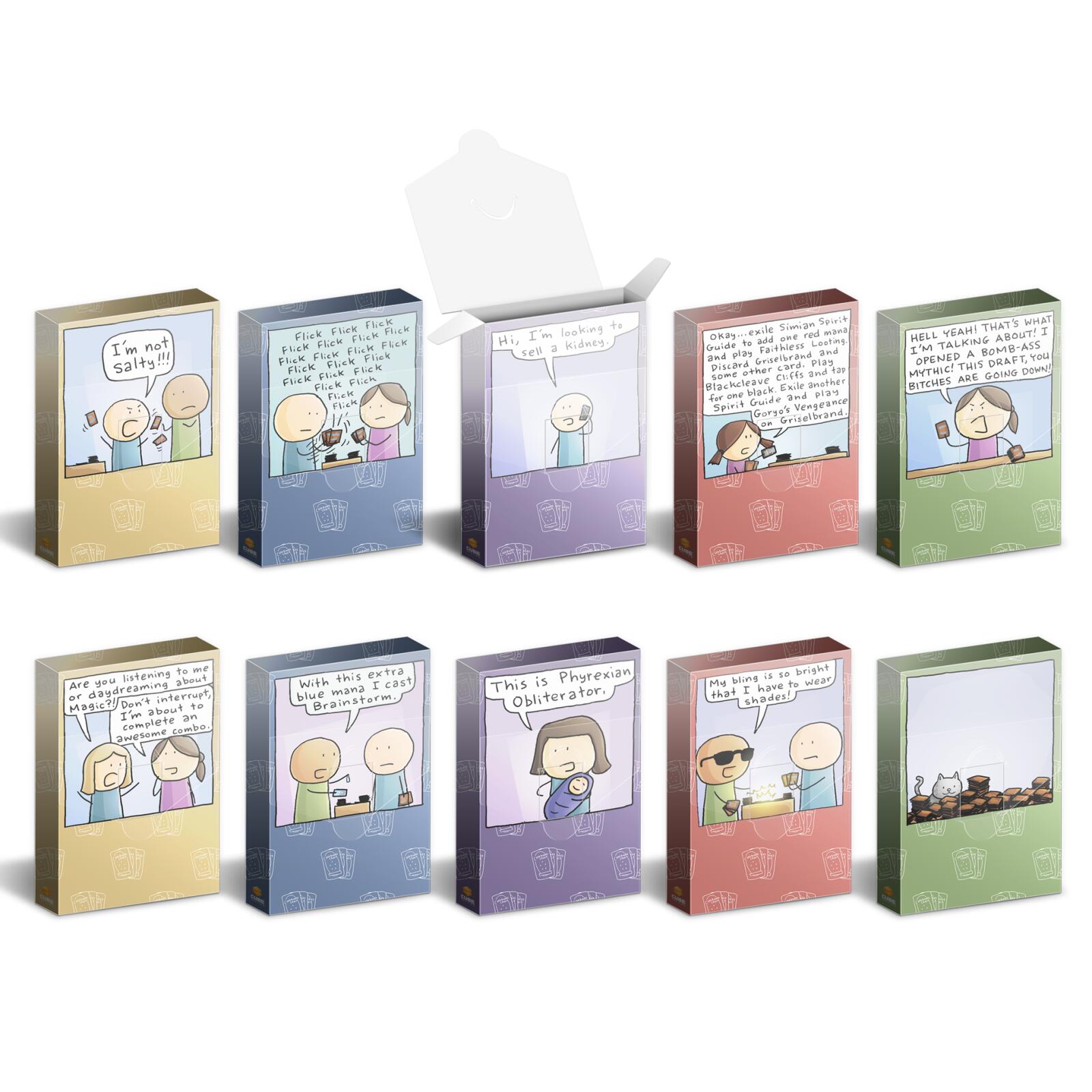 Cubeamajigs are reusable gaming packs that allow you to recreate the experience of opening a sealed pack of cards! They also serve as a great way to store a sideboard or cards together.