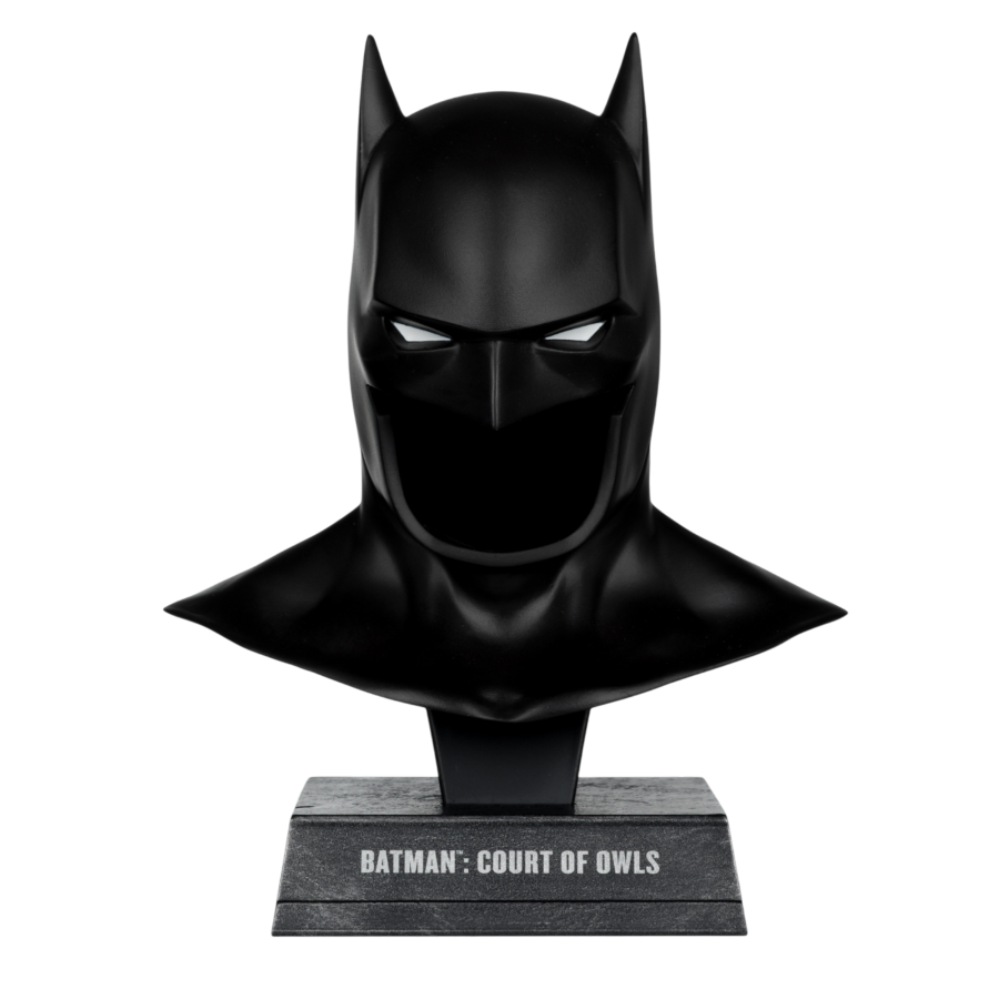 Based on The Dark Knight from Batman Court of Owls The New 52 and a new beginning for Batman! Features: - 1:3 scale cowl replica based on Batman Court of Owls - Stands approximately 7" tall - Includes display stand - Collect all McFarlane Toys DC Direct Replica Cowls