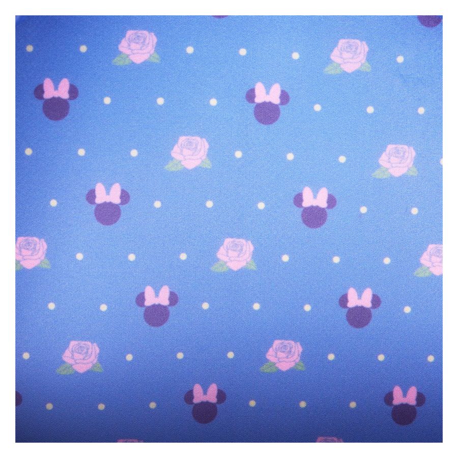 Fashion is in full bloom with this Disneys Minnie Mouse mini backpack. Minnie flourishes in style on the front of this circular-shaped accessory. She appears as an applique, all dressed up and holding a small bouquet of flowers. Embroidered roses surround her, and vintage lace details in pink and white make concentric circles to frame the scene. Pack your daily essentials, take off on an adventure, and watch the fun blossom. Features: Faux leather (polyurethane) Adjustable, padded strap with polka dot and lace details Sturdy top handle Silver-colored metal hardware Applique, printed, embroidered, and lace details Coordinating inside lining Dimensions: 9W x 9H x 3.25D 22.9 cm W x 22.9 cm H x 8.3 cm D This backpack is an officially licensed Disney product.