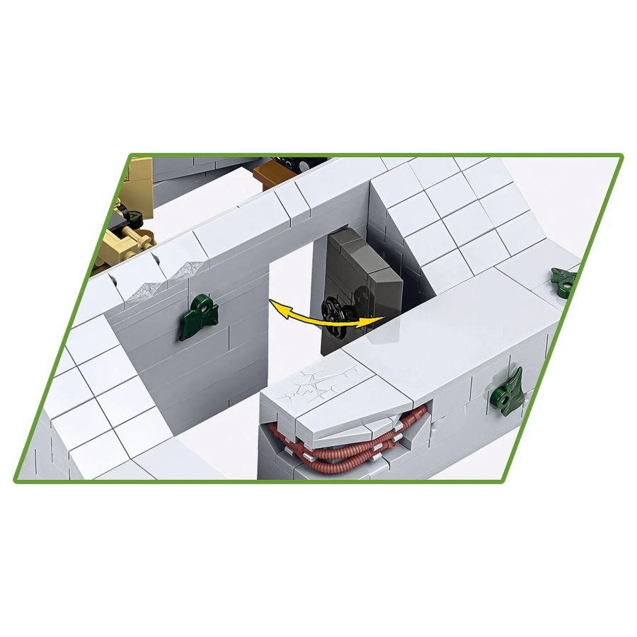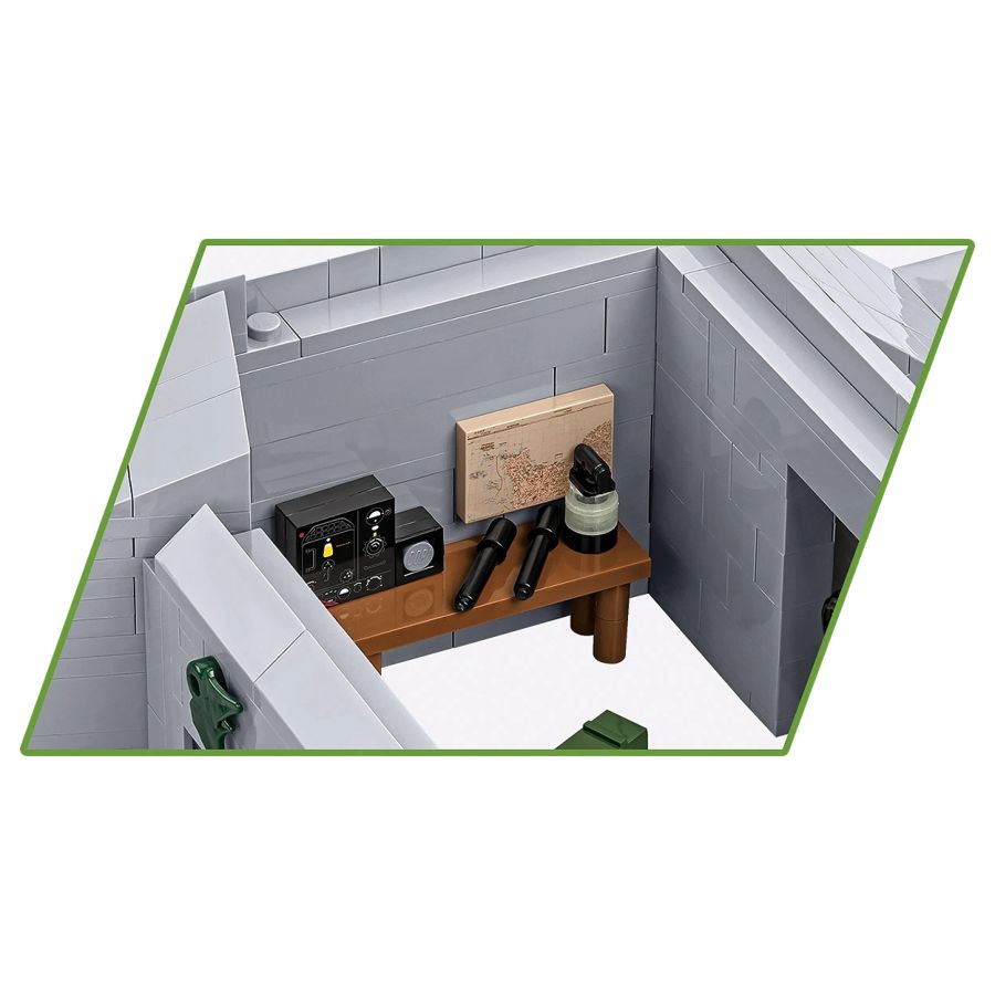 The Regelbau 667 set from COBI is a great addition to the HISTORICAL COLLECTION World War II collection. Thanks to 630 high-quality blocks, you will be able to reproduce one of the most important elements of German defense used during World War II. The Regelbau 667 shelter was designed to protect German soldiers from the expected Allied invasion. Its main purpose was to provide shelter and safety not only for soldiers, but also for valuable military equipment, which was necessary for conducting warfare. Thanks to its solid construction of concrete and reinforcing steel, the bunker was resistant to artillery fire and bombing, making it extremely difficult to destroy. Such fortifications were intended not only to defend against direct attack, but also to provide a strategic advantage in difficult war conditions. They were an important element in creating a line of defense that was intended to stop the invasion of Allied forces. Building the Regelbau 667 model from COBI is not only a fun modeling game, but also a deeper understanding of the historical context in which these bunkers took part. Advantages of the Regelbau 667 - German Bunker set: Scale 1:35 - The Regelbau 667 bunker in 1:35 scale provides incredible accuracy, allowing you to create a fully functional model. The size of the bunker matches the extensive and still intensively developed WW2 collection and is perfect for creating dioramas, scenes and block compositions using COBI models and figures. Each element is reproduced with attention to detail, making it not only a great object for construction, but also an impressive decoration on the shelf. Realistic minifigures - The set includes two minifigures of a German soldier and a radio operator, which add realism and can be used in dioramas, battle scenes or simply as a decorative element. These figures fit perfectly into the shelter, and their details reflect the authentic appearance of soldiers from World War II. Simple construction instructions - The set is equipped with detailed, illustrated instructions that allow for easy construction, regardless of the level of advancement. The assembly process is pleasant and educational, and the end result is satisfying. Open roof - The model has an opening roof, which allows you to see the interior of the bunker. This feature facilitates play and encourages role-playing, but also gives you the opportunity to see what the interior of the shelter looked like and what was hidden inside. Additional accessories - The shelter model is complemented by accessories such as plant camouflage, barrels for provisions, or sandbags. Additionally, in the bunker we have a Kwk 39L anti-tank gun, radio stations, grenades and MP-40 and Mauser Kar98k rifles. Toy and decoration in one - After the fun is over, this realistic model will become a great room decoration that will surely attract the eye of every history fan. Wide selection - Check out other vehicles from the HISTORICAL COLLECTION World War II series and create your own collection of historical machines! The COBI Regelbau 667 set is a great opportunity to combine your passion for history and block modeling. Thanks to this, you have the chance not only to build an impressive, detailed model of the bunker, but also to delve into the history of one of the most recognizable fortifications of World War II. The set is perfect for lovers of war dioramas, collectors of models and anyone who is passionate about history! Build your own Regelbau 667 bunker and discover the fascinating world of war fortifications! - 642 high-quality elements - Manufactured in the EU by a company with over 35 years of tradition - The blocks meet the safety standards of products for children - Fully compatible with other brands of construction blocks - Blocks with prints do not scratch or smear and do not fade during play or under the influence of temperature - Clear and intuitive instructions based on illustrations and step-by-step directions - 2 figures - Scale 1:35 Model dimensions: 27.5 x 21.5 x 8